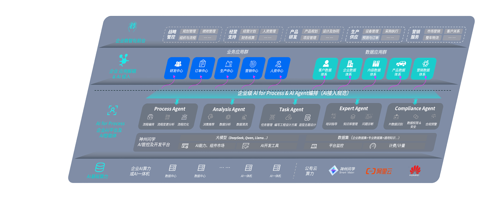 端到端的一站式AI工作空间深度融合了从企业战略规划到日常经营的全流程业务板块,,,定向解决车企内部领域多、、、部门多、、、链条长、、、场景碎片化等难题,,支持车企快速构建以AI为核心的生产力写作体系,,实现任务执行与AI能力的无缝集成与交互